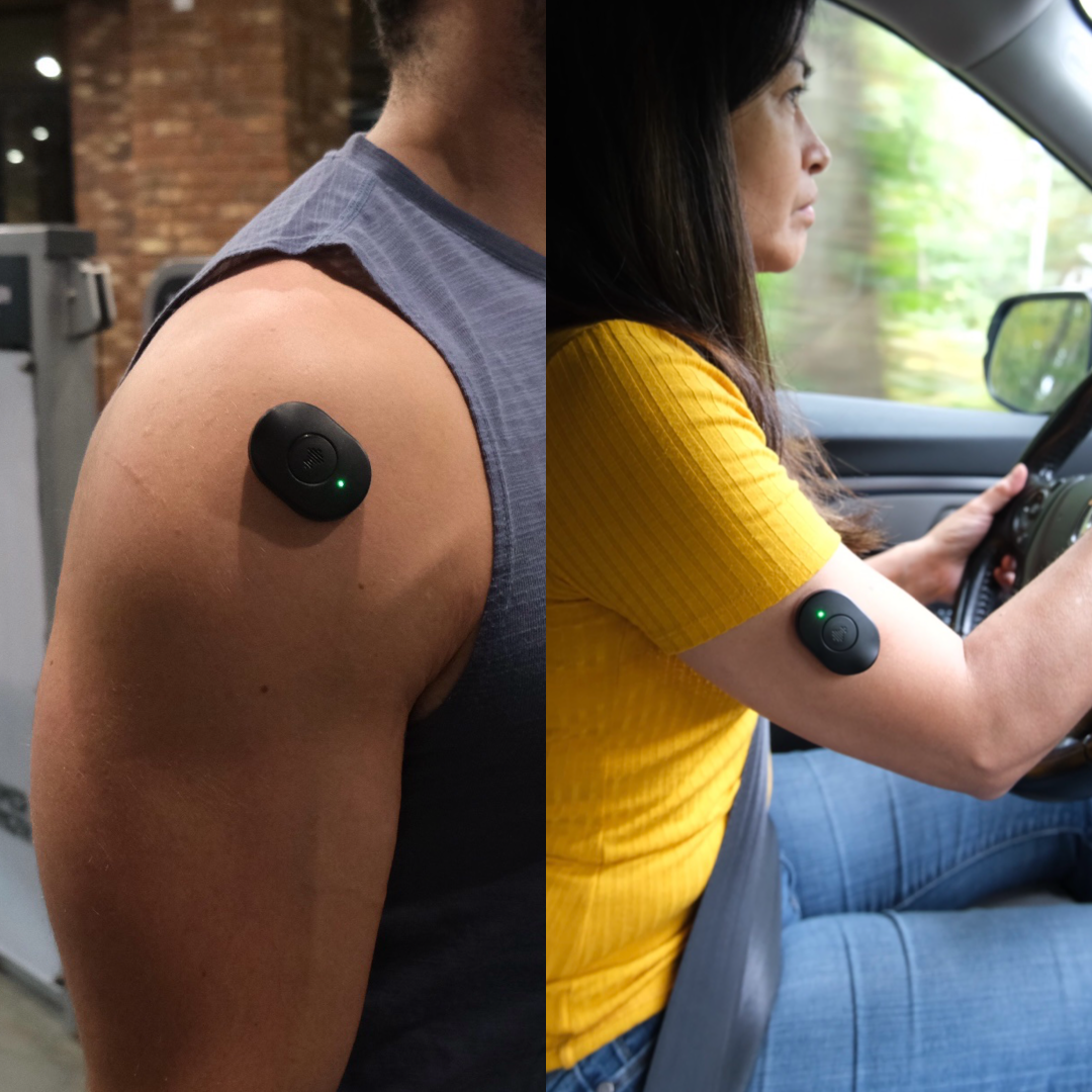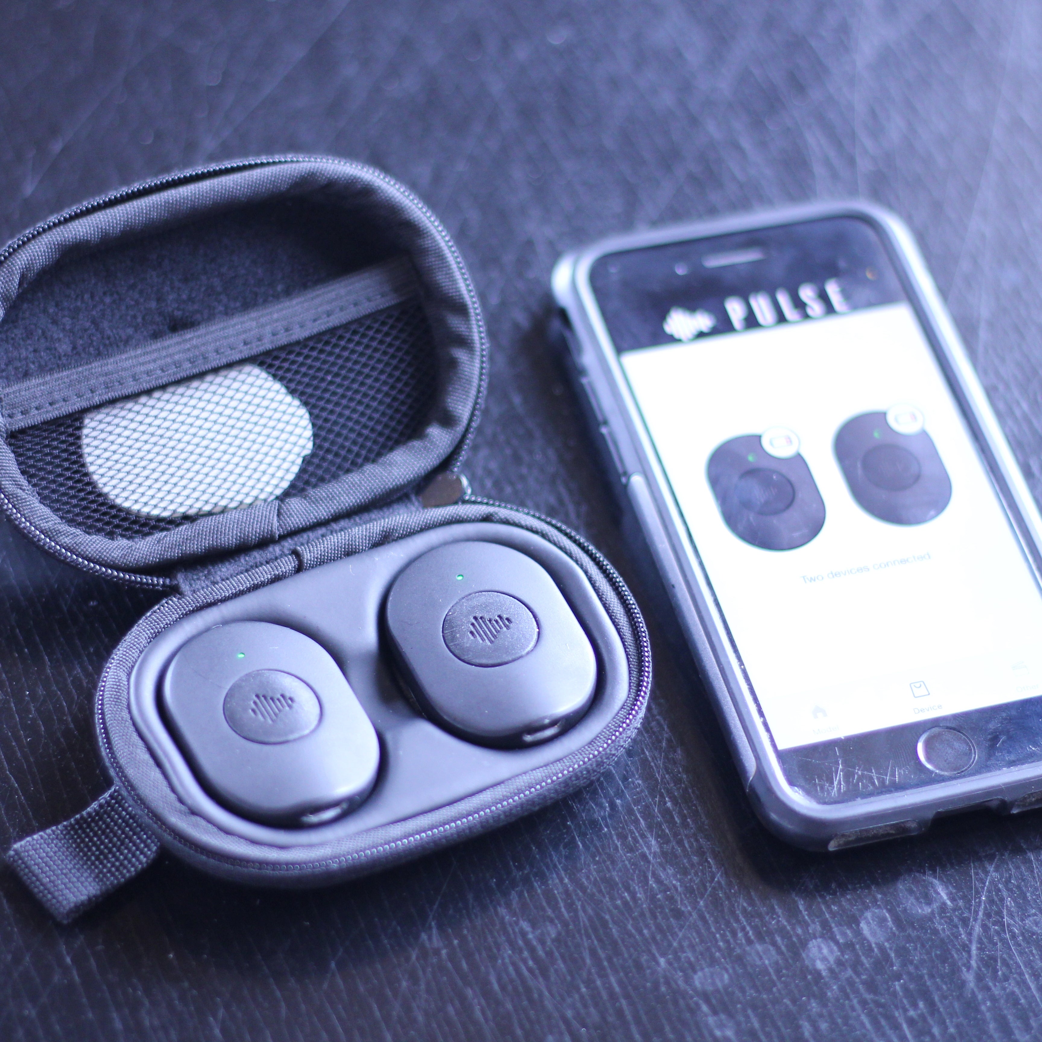 The Pulse Device comes with a pocket-sized carrying case that can store both devices and the adhesive pads.