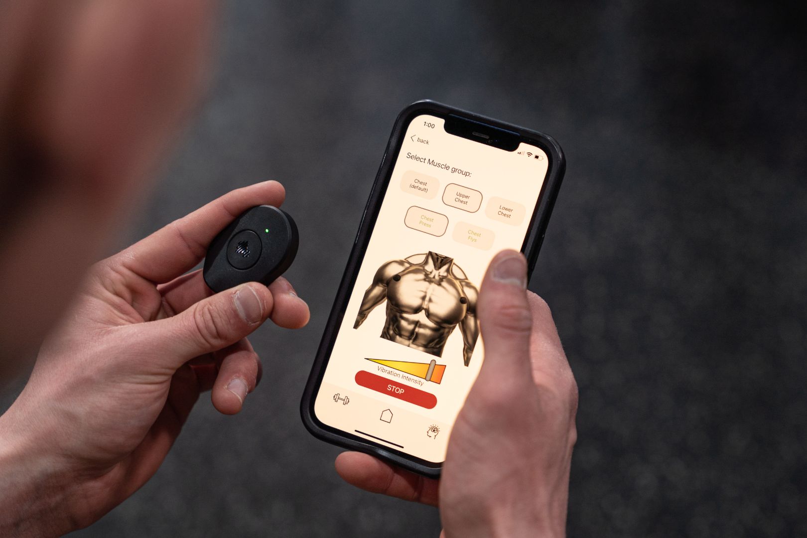 Select the muscle you're targeting on our app to access its unique settings.